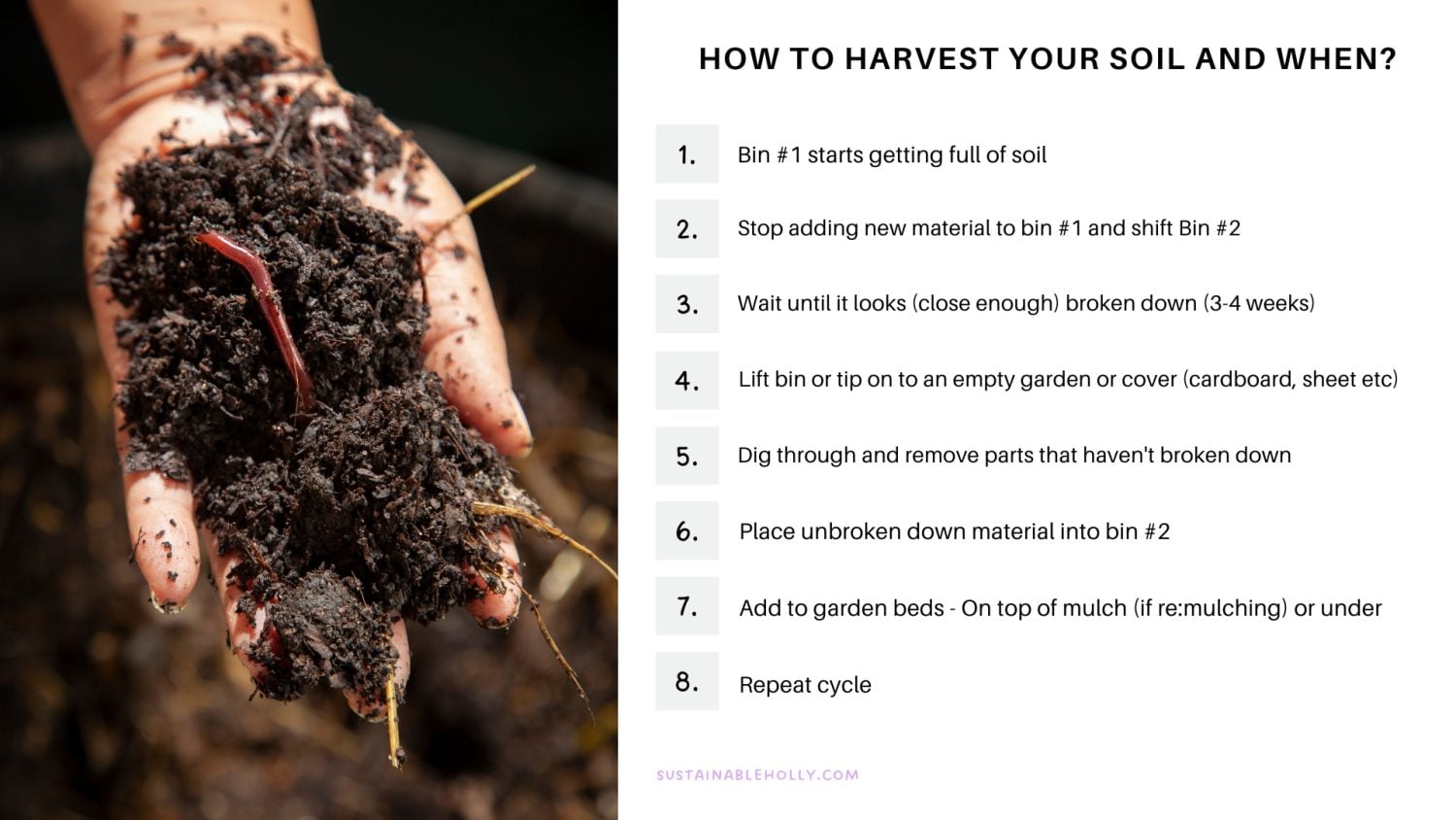 Once all your food scraps and plant material have turned into dark nutrient-rich soil, you can add this to your garden beds to replenish and feed your plants. As plants grow, they draw up nutrients from the soil, so it is important that we continue to replenish and feed our gardens regularly.