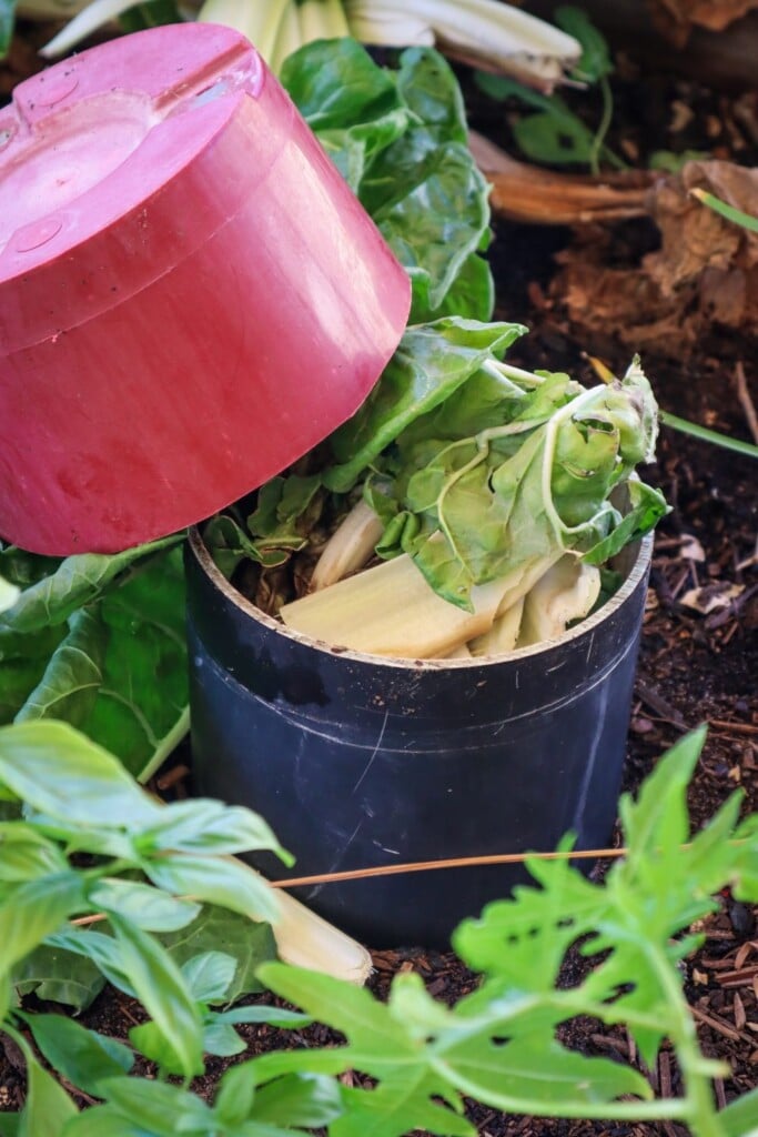 It can be handy to have a small compost bucket with a lid to add your kitchen scraps into. This will make it easy to transfer your inside waste out to your compost bin. Keep it small so that you will need to empty it regularly to reduce odor. I just use a bowl and add kitchen scraps from the meal i am preparing and take it straight out to my compost bin. This reduces any bugs hanging around my kitchen.