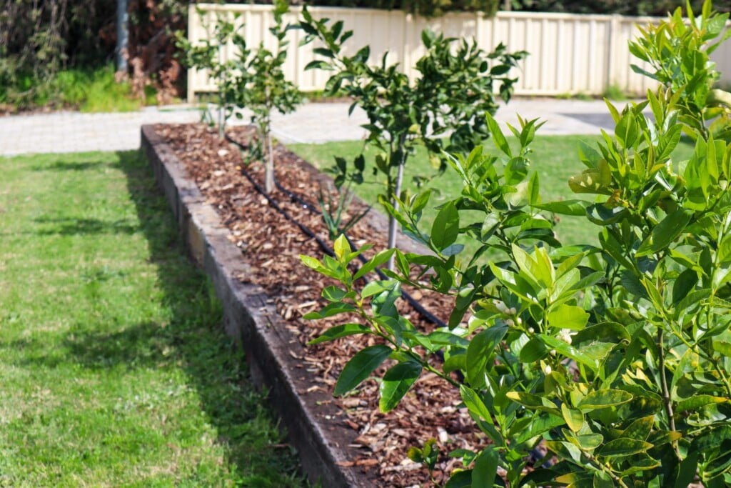 Citrus are quite heavy feeders but young trees in the first year won’t need much if any fertiliser. Use compost, compost teas, worm teas, chicken manure or bedding, and slow-release citrus fertilisers. You can feed citrus every 6 weeks from August to February.