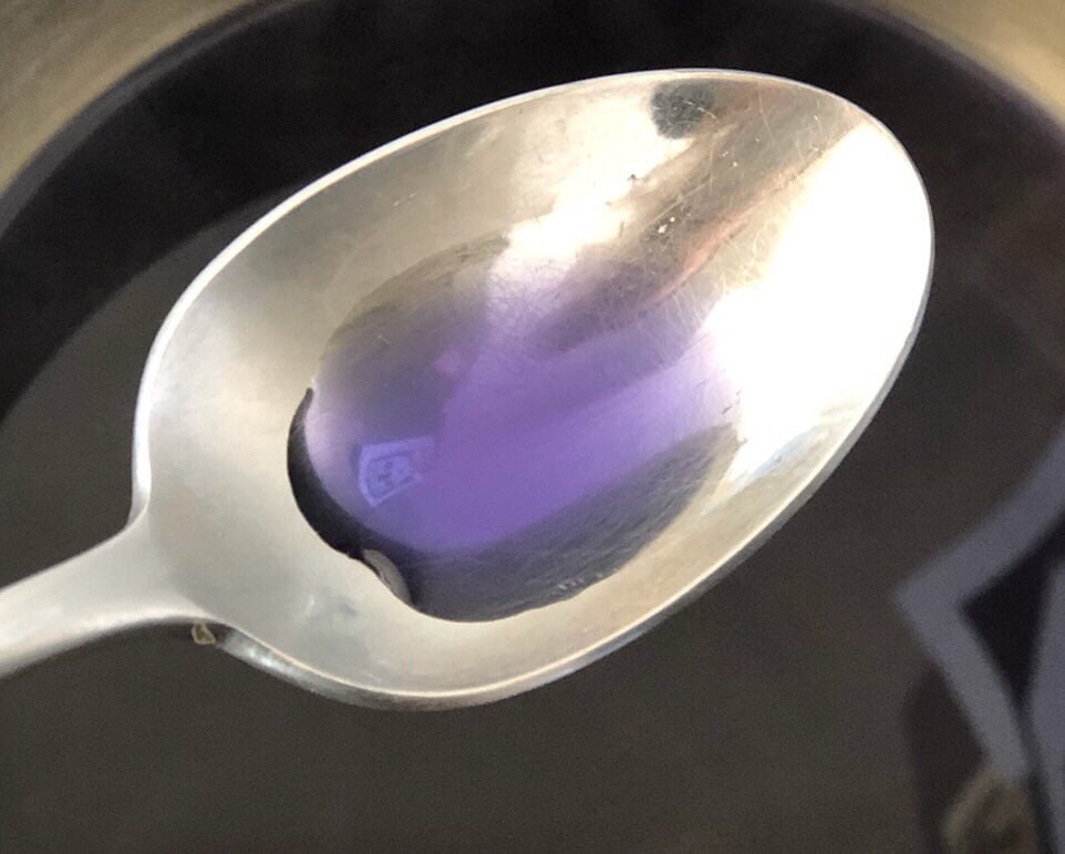 - Add the noodles to the purple water and turn over until they spread out in the pot and are fully submerged in liquid.