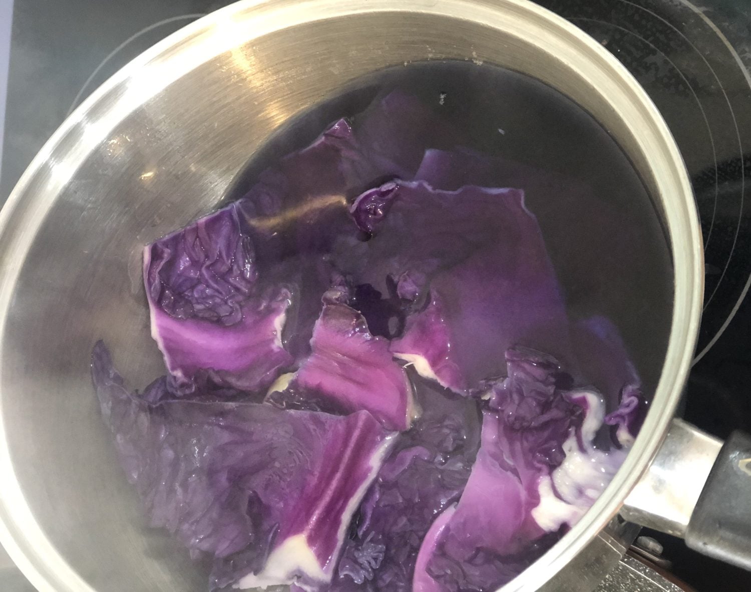 - Add water and cabbage to a pot and bring to the boil. Let it simmer for 5-10 mins bruising the cabbage with a wooden spoon.